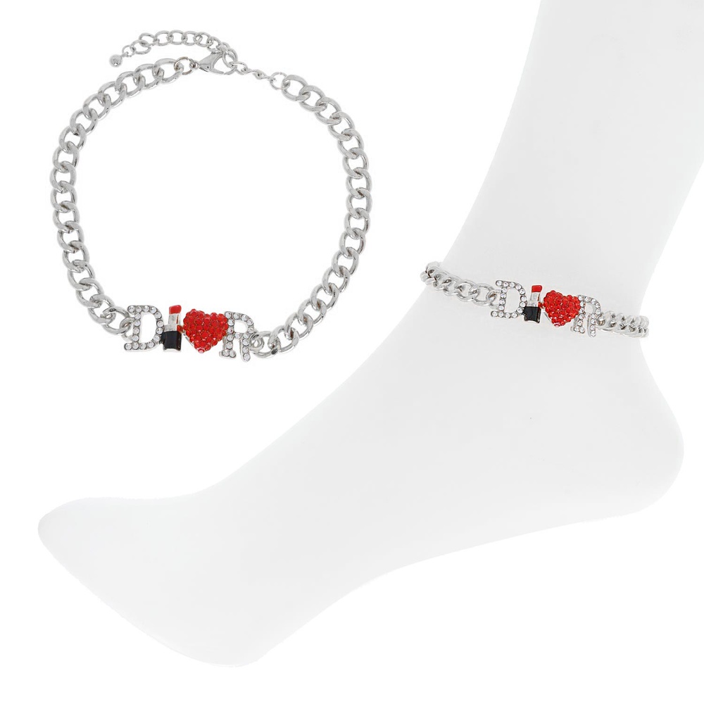 FASHIONISTA LIPSTICK HEART CRYSTAL RHINESTONE ENAMEL COATED ADJUSTABLE CHAIN LINK ANKLET
