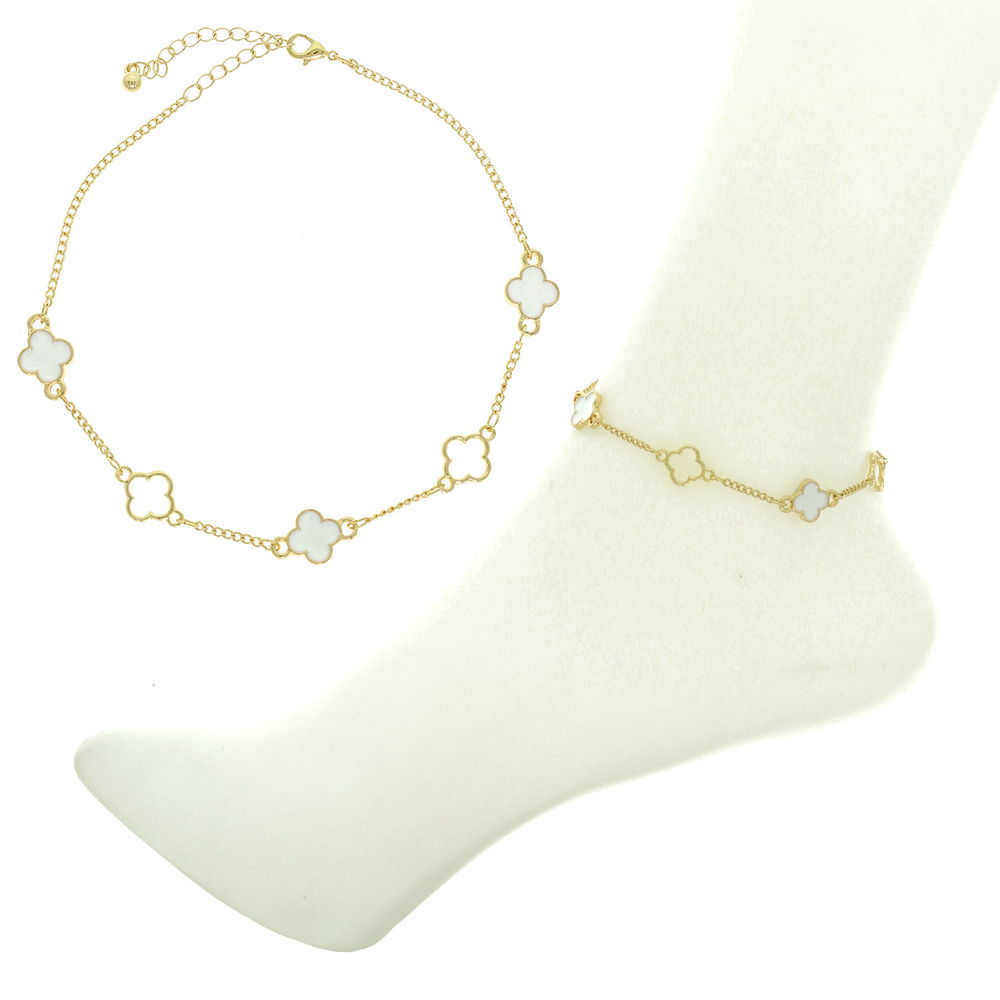Four-leaf Clover Quatrefoil Charm Station Anklet