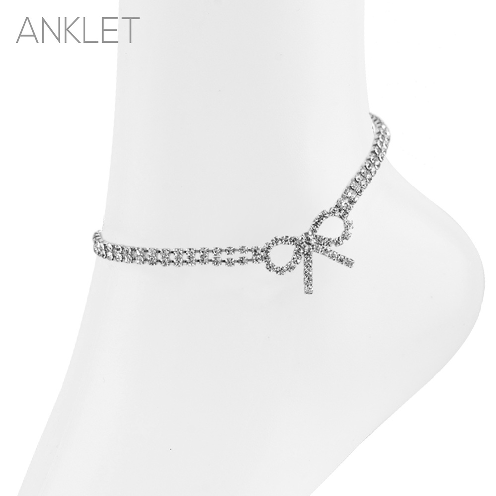 Rhinestone Bowknot Charm Anklet