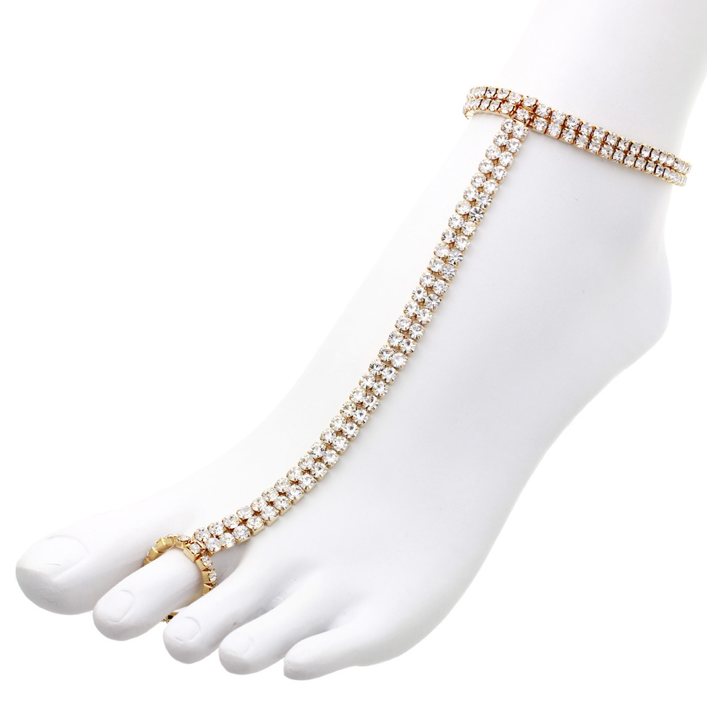 2 LINE RHINESTONE ANKLET W/ TOE RING CHAIN