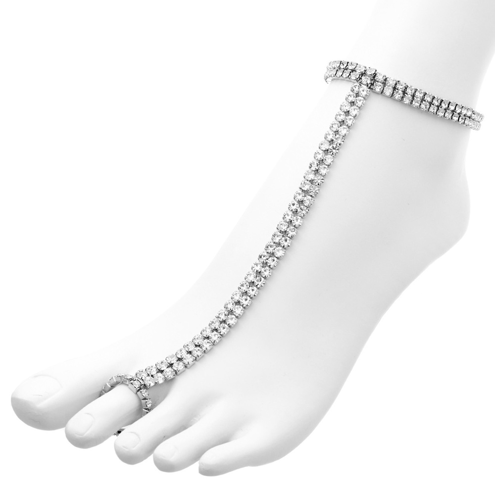 2 Line Rhinestone Anklet W/ Toe Ring Chain