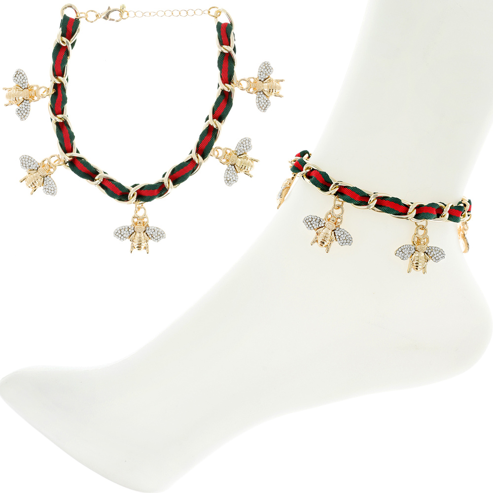 CRYSTAL RHINESTONE BEE CHARM CHAIN ANKLET