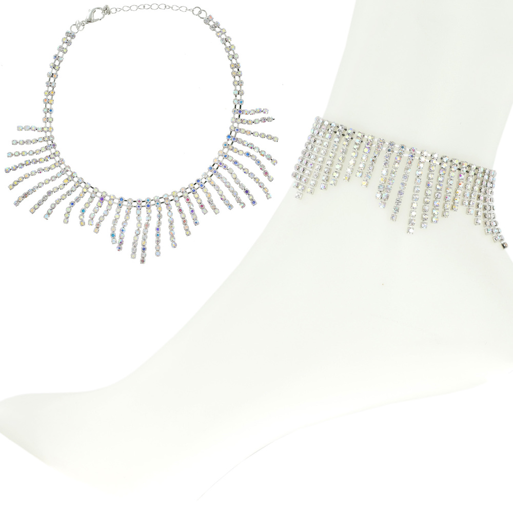 CRYSTAL RHINESTONE FRINGE ANKLET FOOT JEWELRY