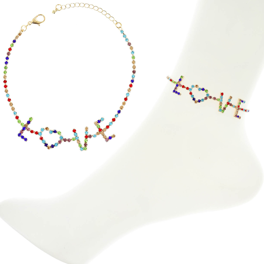 Crystal Rhinestone Love Anklet Foot Jewelry