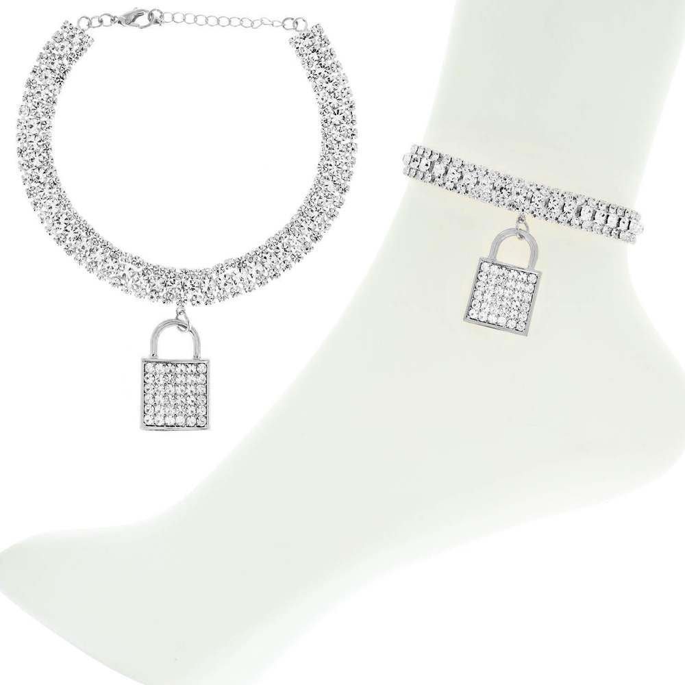 Crystal Rhinestone Lock Charm Anklet Foot Jewelry