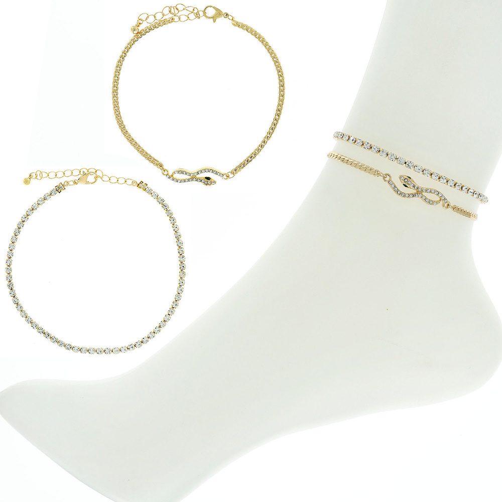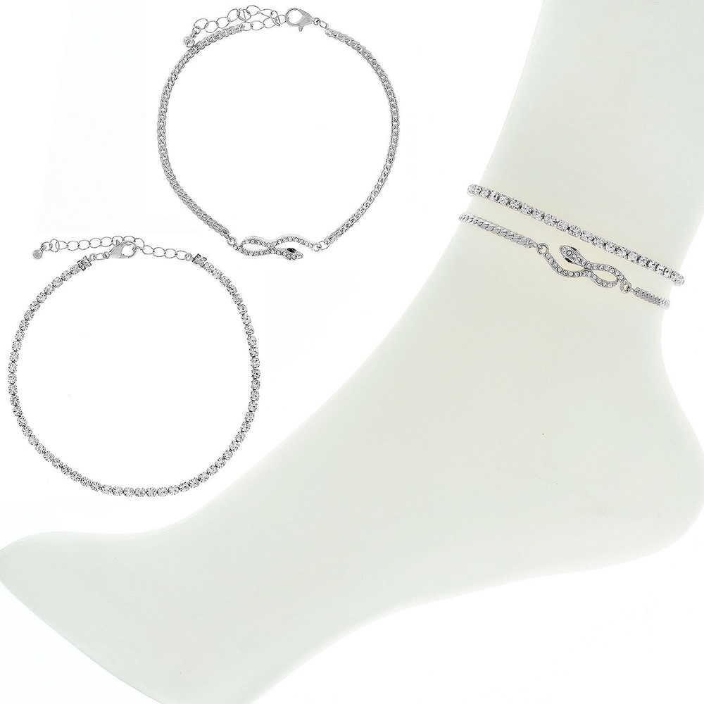 Crystal Rhinestone Snake Two Layered Anklet Foot Jewelry