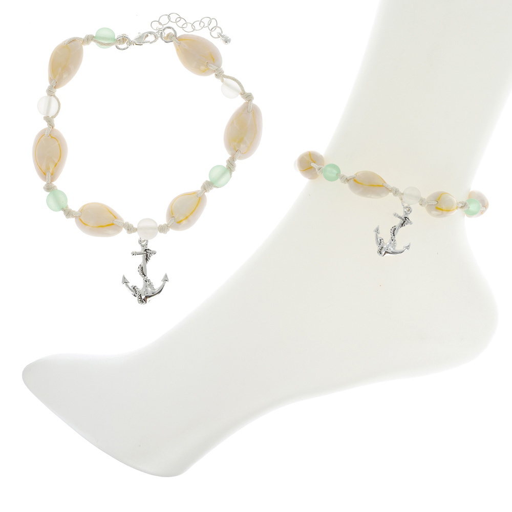 Anchor -nautical Themed Adjustable Sea Glass Beaded Charm Anklet