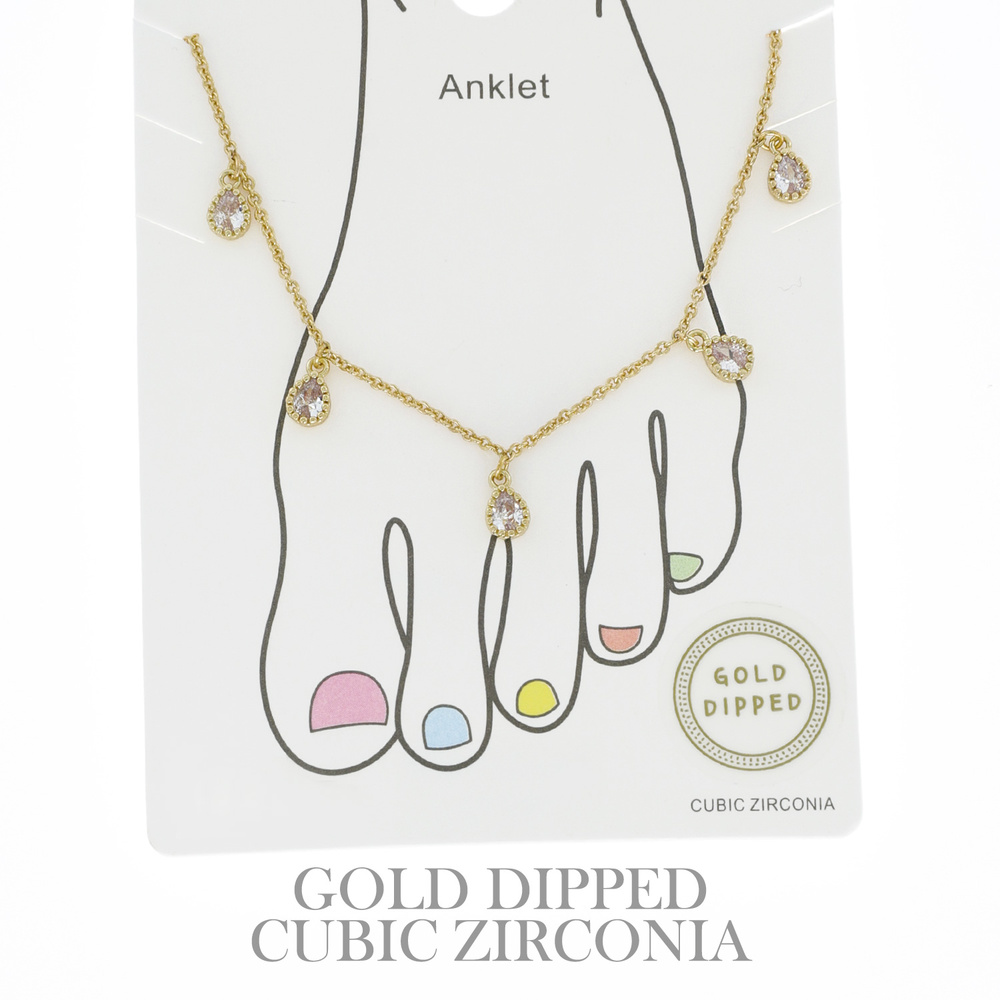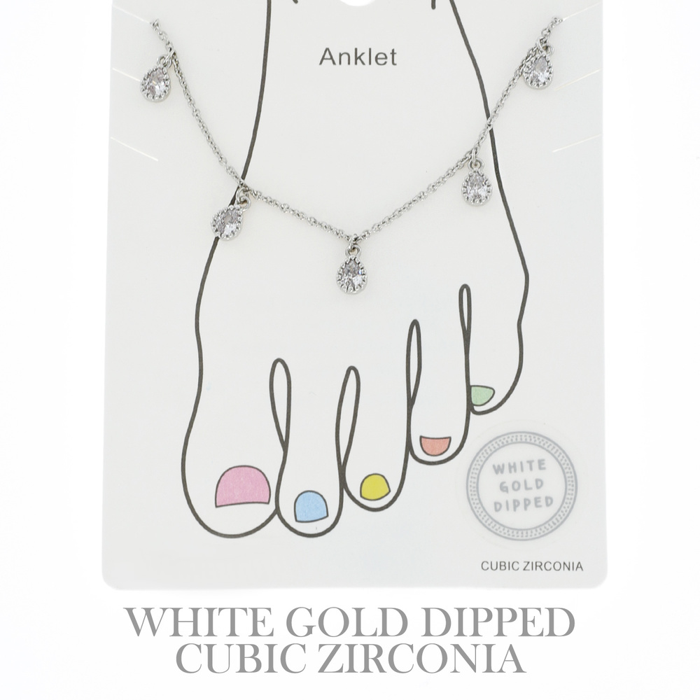 TEARDROP SHAPED CUBIC ZIRCONIA ADJUSTABLE CHARM ANKLET IN YELLOW GOLD AND WHITE GOLD PLATING