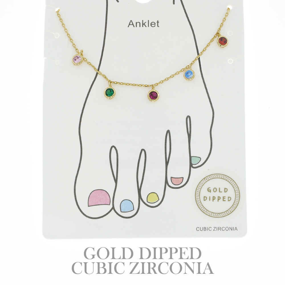 CUBIC ZIRCONIA DISC ADJUSTABLE CHARM ANKLET IN YELLOW GOLD AND WHITE GOLD PLATING