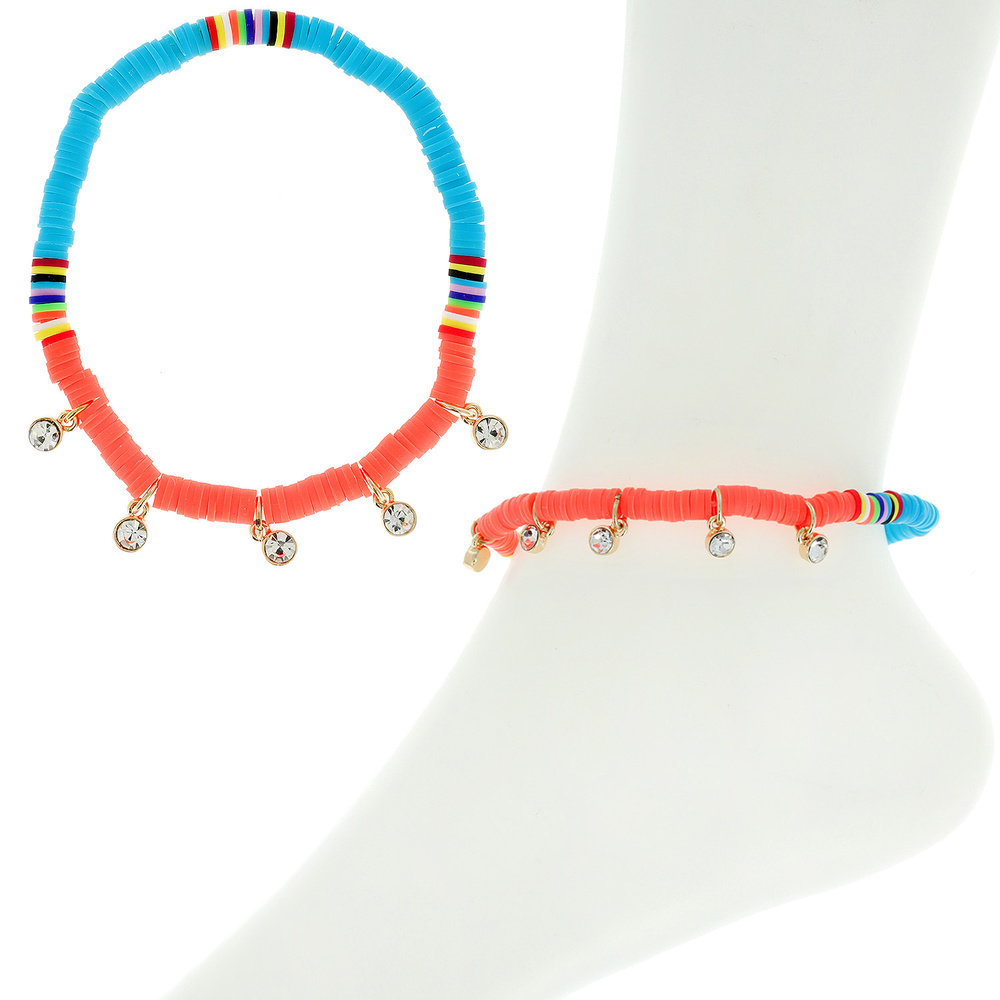 Bohemian Bead Rhinestone Charm Stretch Anklet