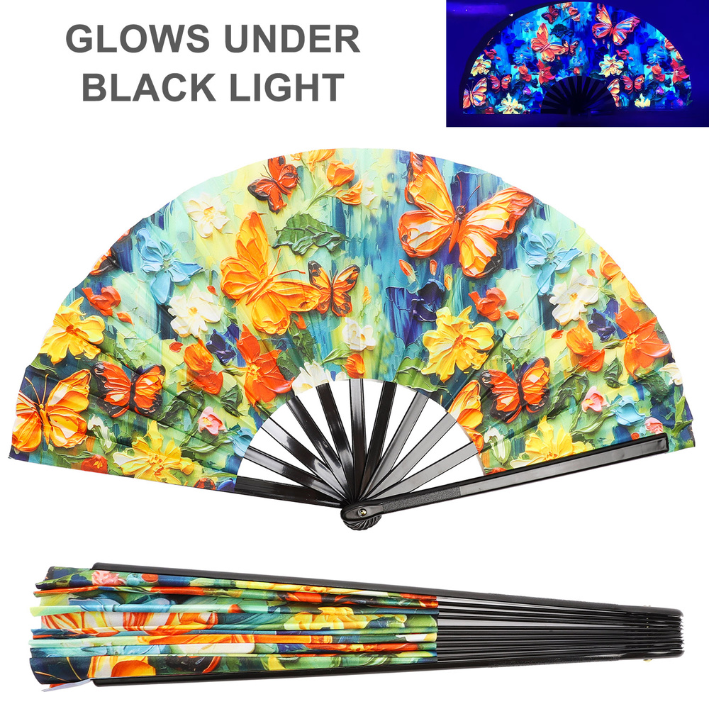VIBRANT SOLID COLOR LARGE FOLDING HAND FAN FOR EVENTS AND DANCE