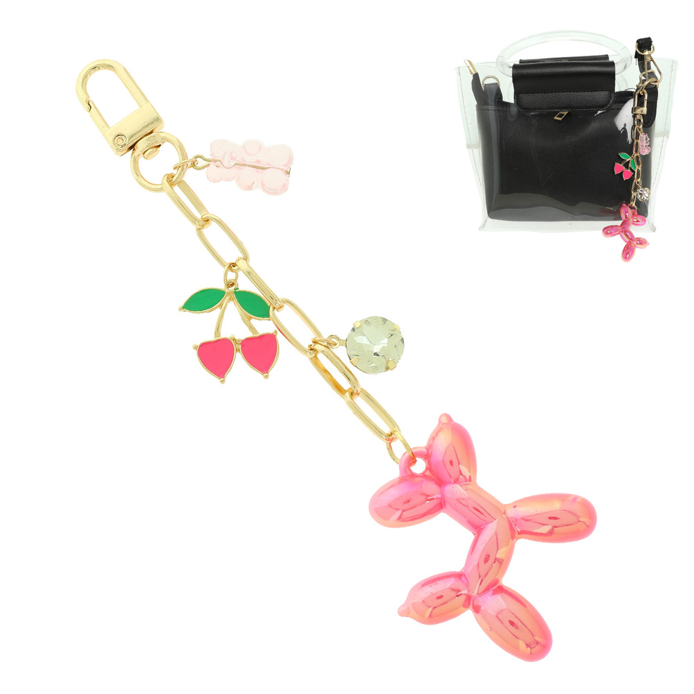 GIRLY THEME ENAMEL MULTI-CHARM BAG CHAIN WITH SNAP HOOK CLASP