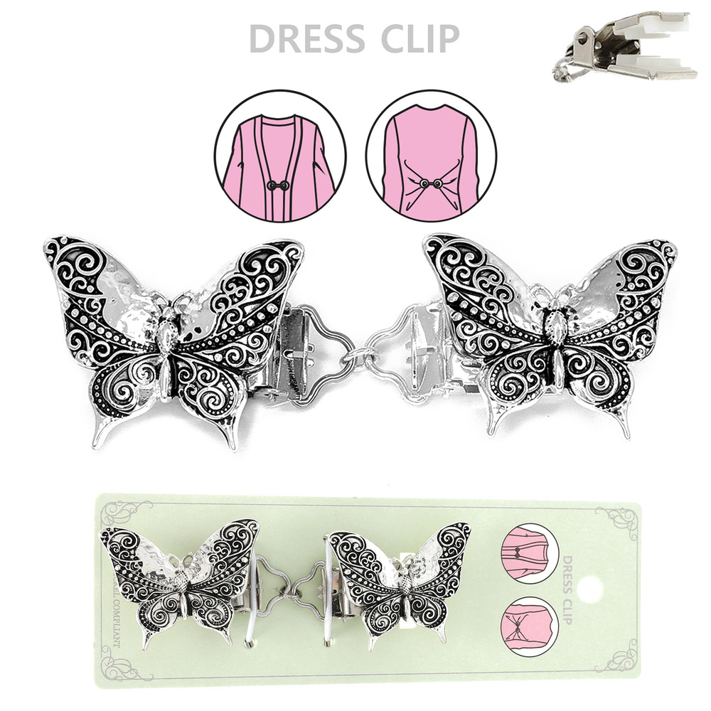FASHION FILIGREE BUTTERFLY DRESS CLIP IN OXIDIZED SILVER-TONE METAL