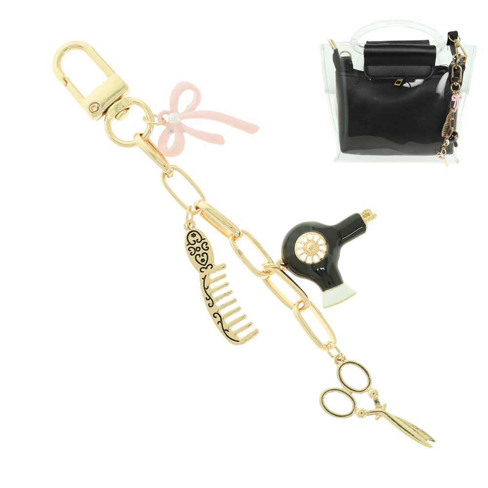HAIR STYLIST THEME ENAMEL MULTI-CHARM BAG CHAIN WITH SNAP HOOK CLASP