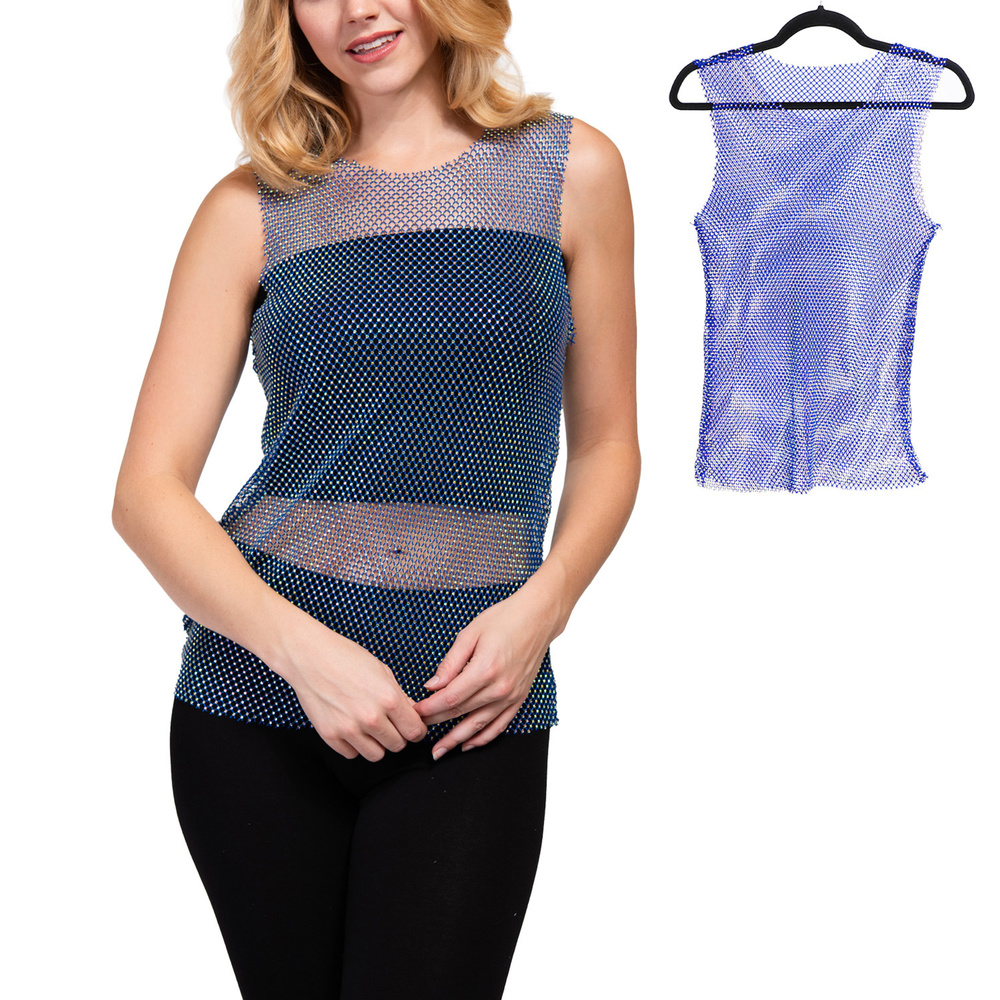 CRYSTAL RHINESTONE FISHNET TANK TOP