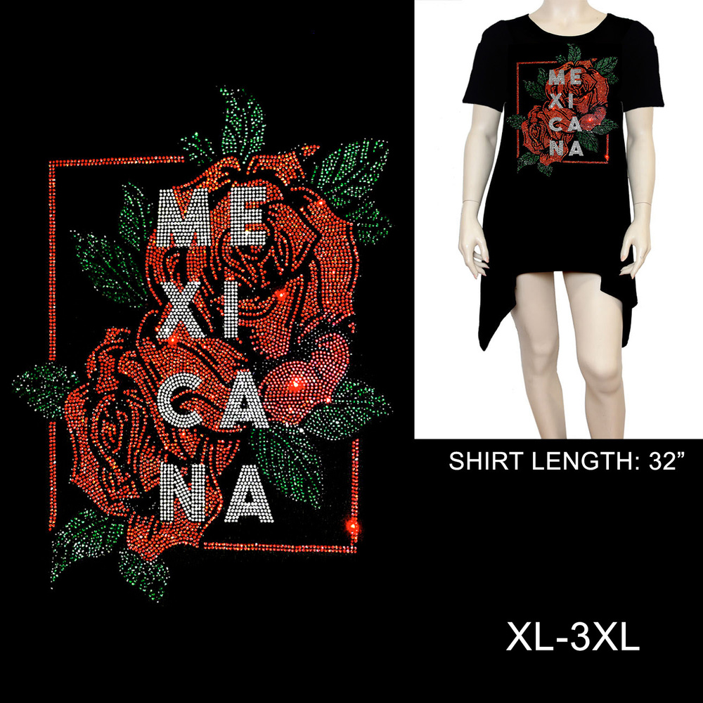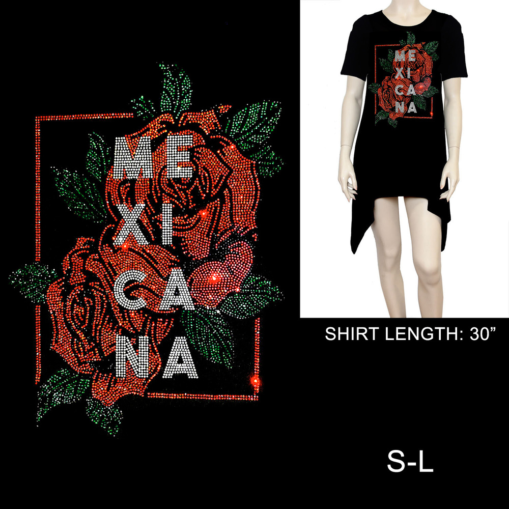 Mexicanna Rhinestone Studded High Low Short Sleeved Graphic T-shirt Dress
