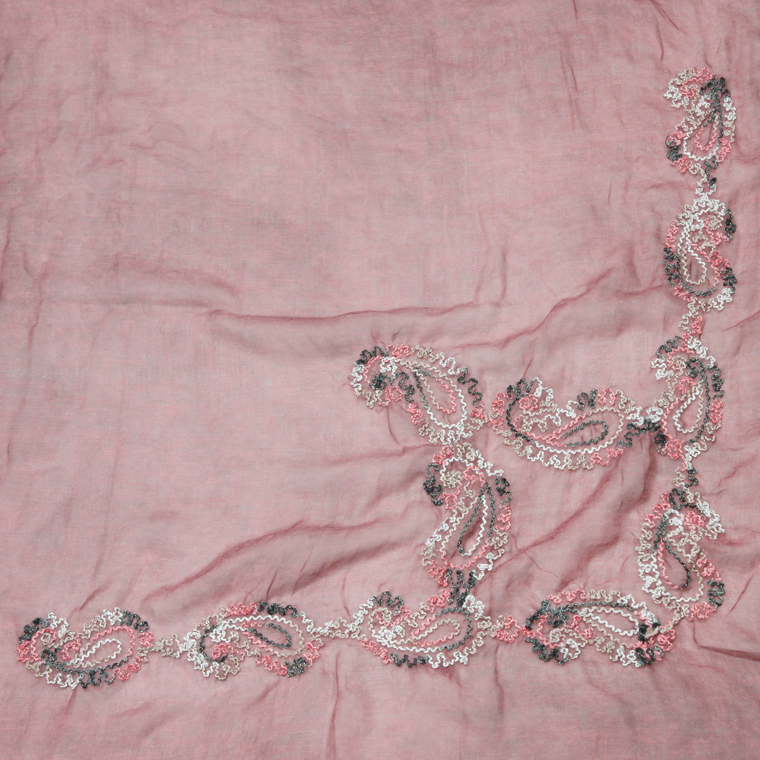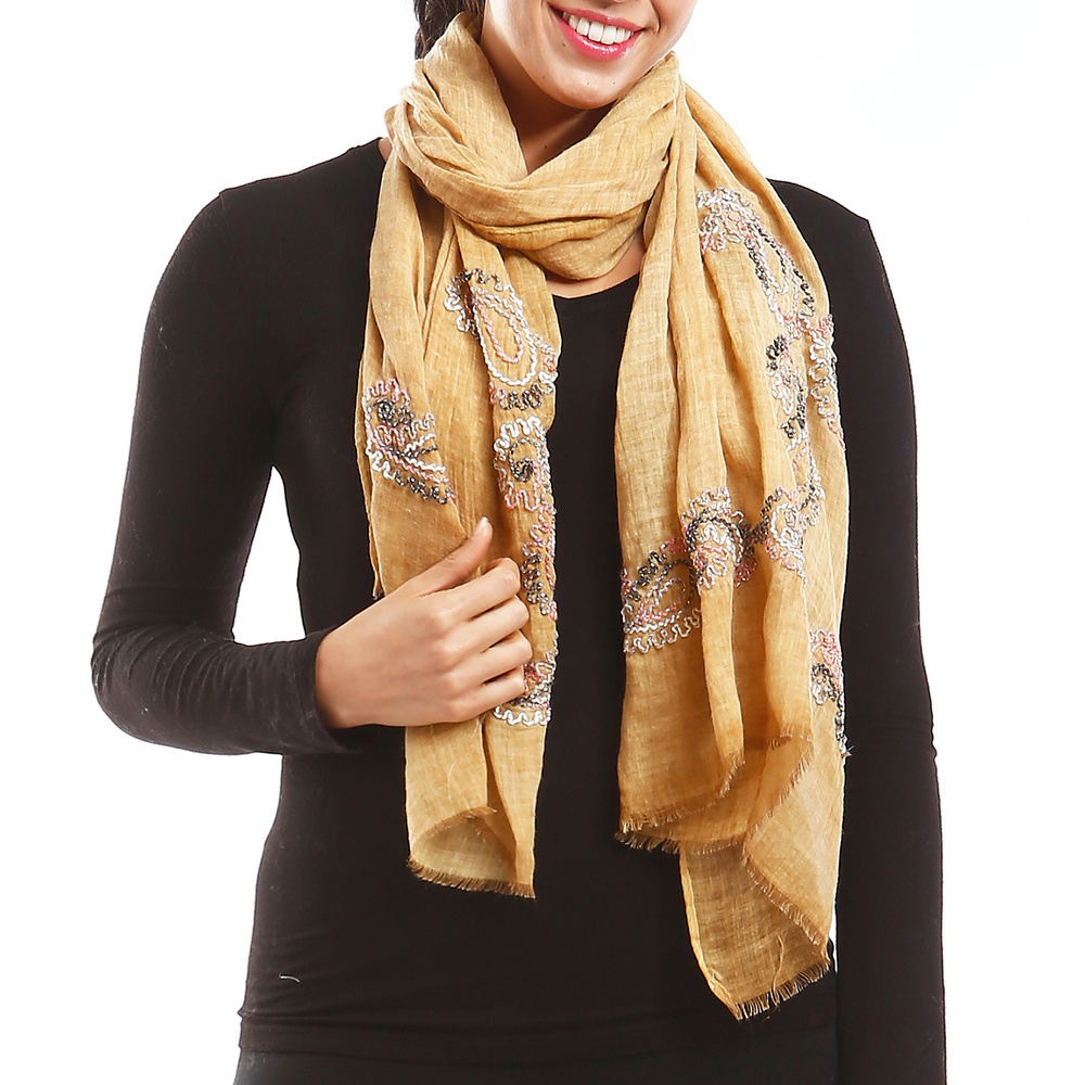 Oblong Scarf W/ Yarn Embroidery