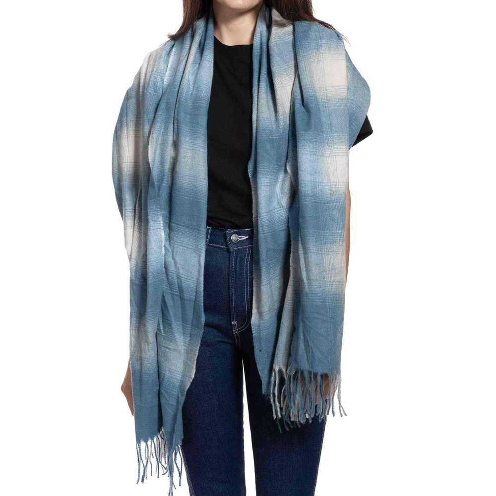 MULTIUSE GRADIENT TARTAN LONG KNIT FRINGE SCARF WRAP