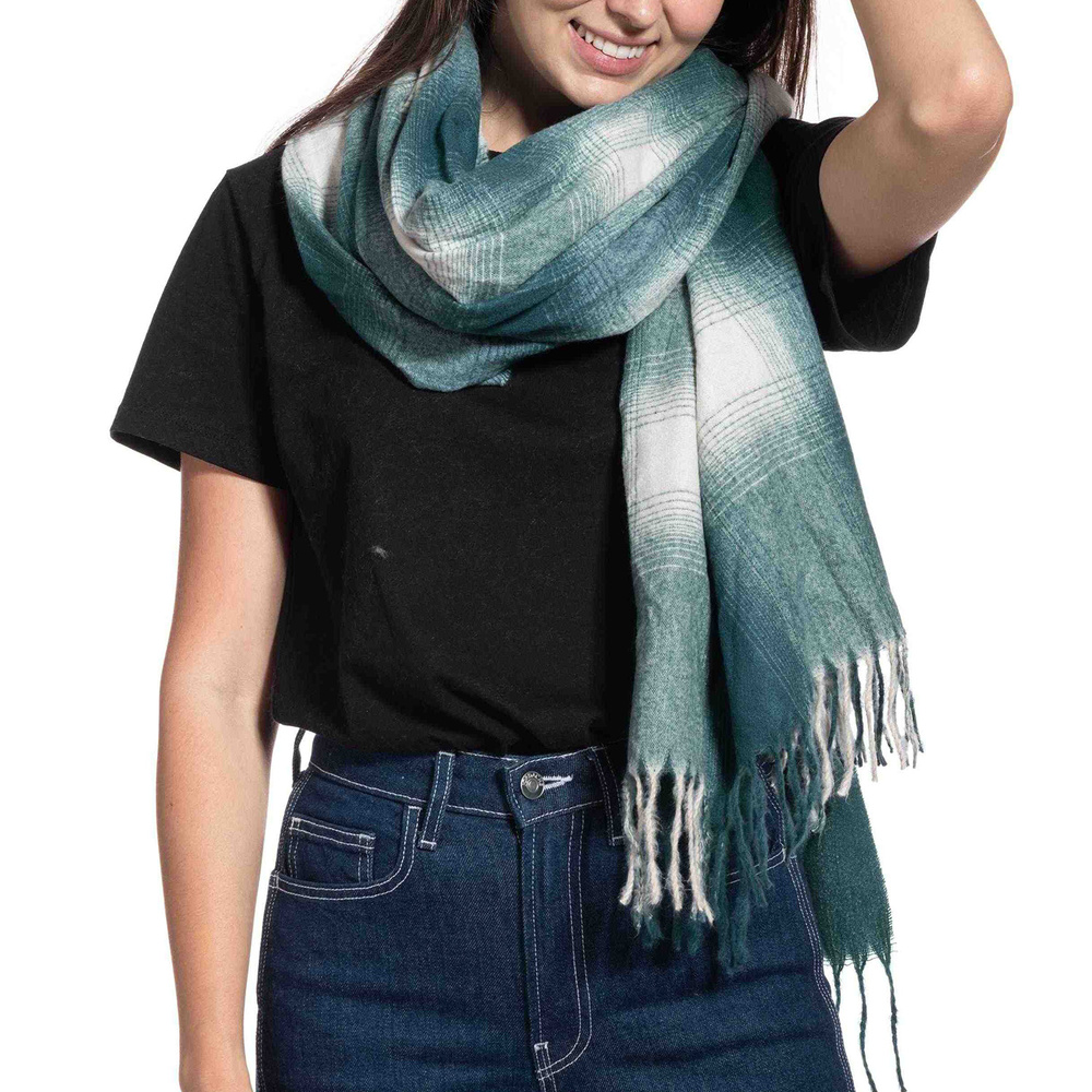 Multiuse Gradient Tartan Long Knit Fringe Scarf Wrap