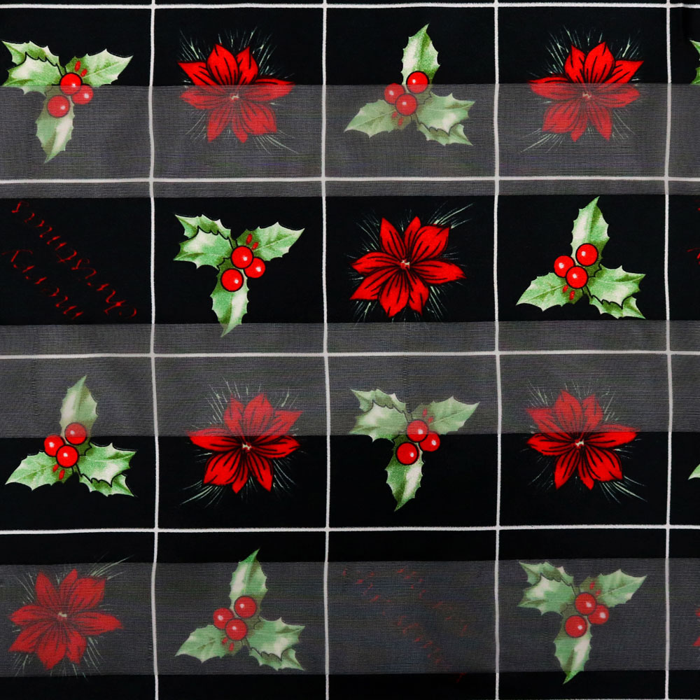 POINSETTIA MISTLETOE GRID PATTERN SEMI TRANSPARENT LONG CHRISTMAS SCARF