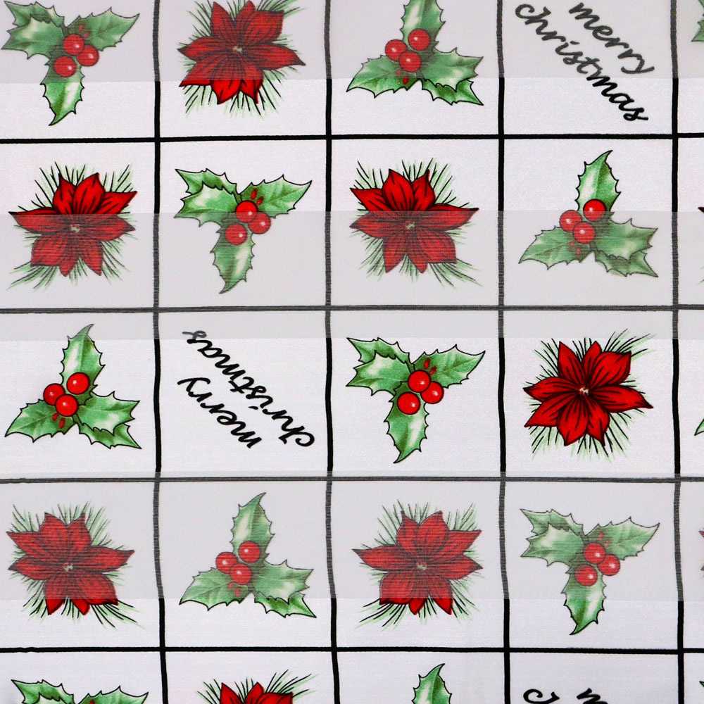 POINSETTIA MISTLETOE GRID PATTERN SEMI TRANSPARENT LONG CHRISTMAS SCARF