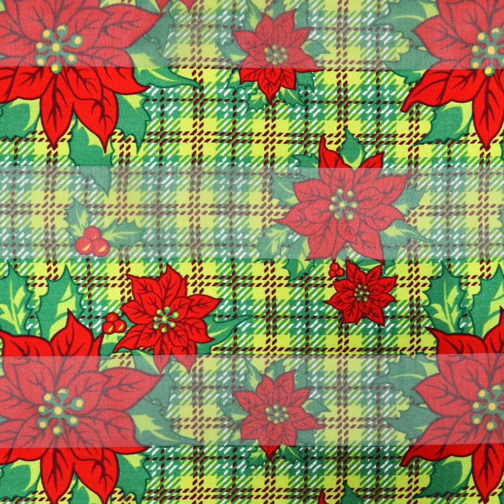 POINSETTIA TARTAN PATTERN SEMI TRANSPARENT LONG CHRISTMAS SCARF