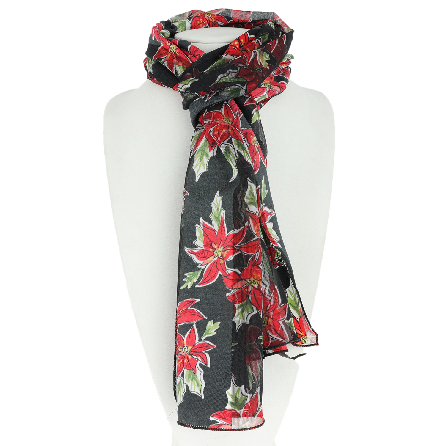 CHRISTMAS POINSETTIA SATIN SCARF 13X60
