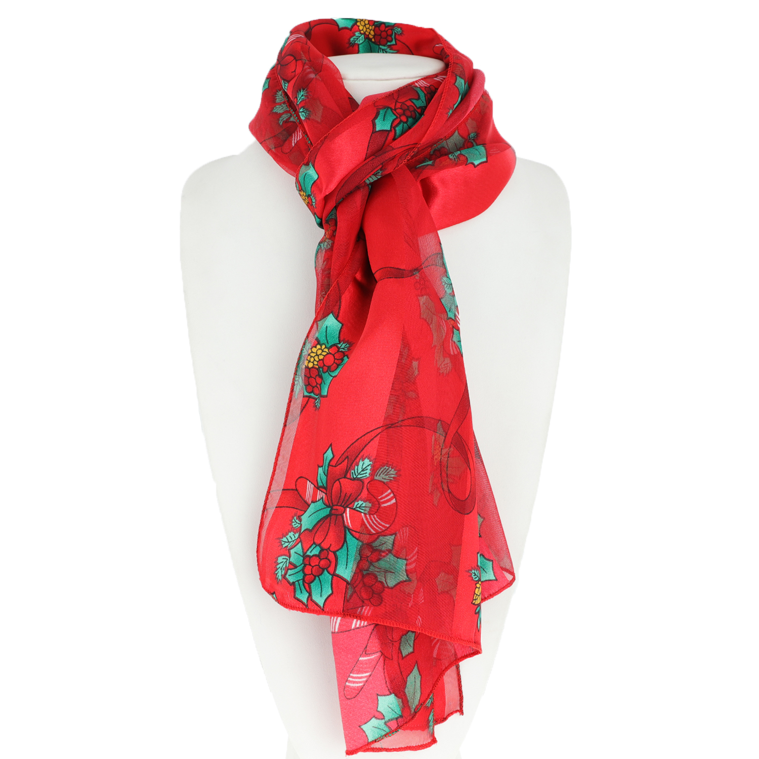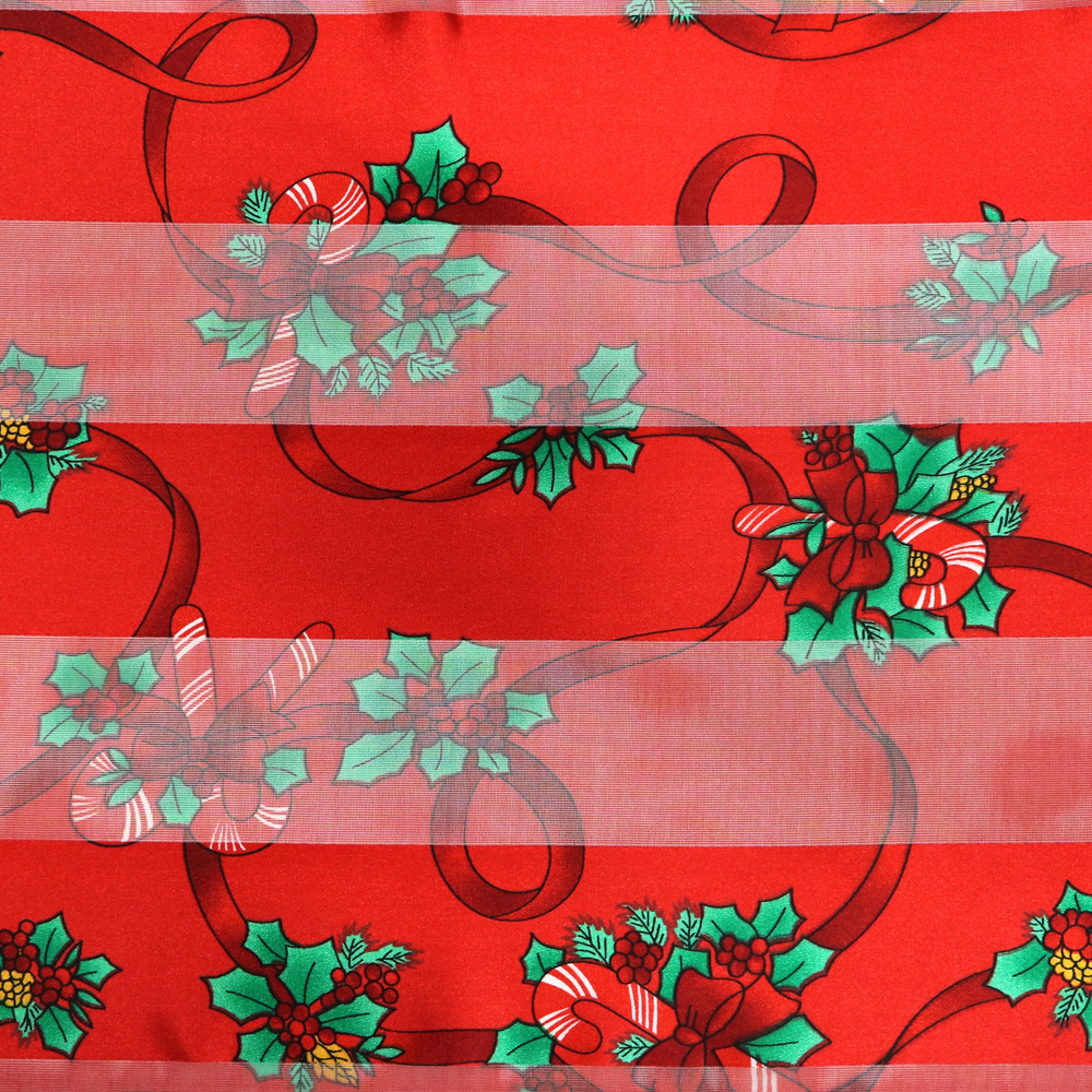 CHRISTMAS POINSETTIA WITH CANDY CANE AND BOW SATIN SCARF 13X60