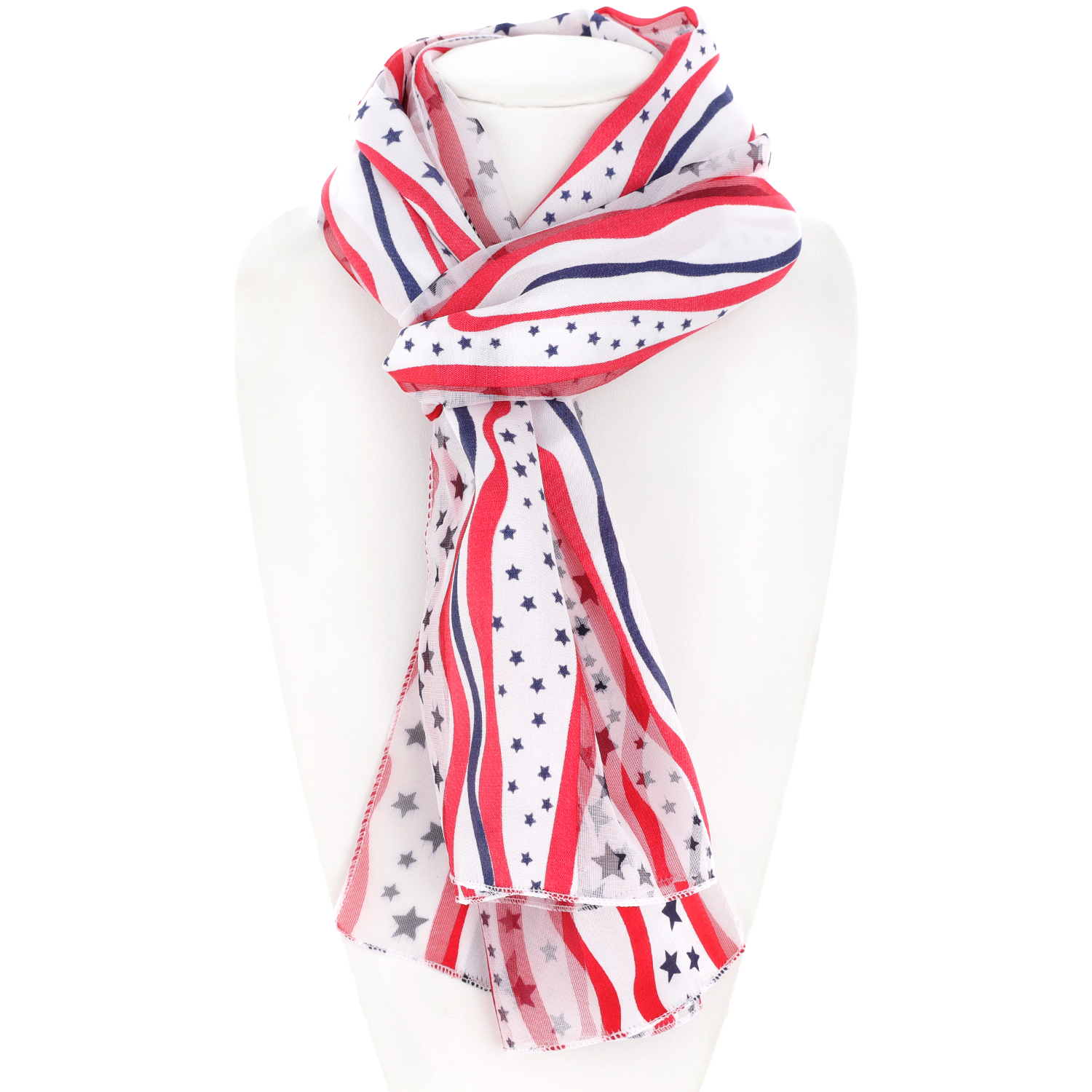 STRIPES AND STARS SHEER SATIN AMERICAN PATRIOTIC SCARF