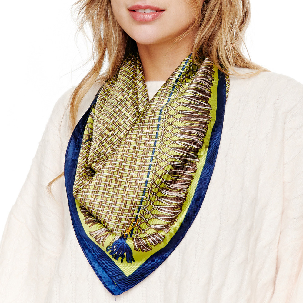 TASSEL WOVEN PATTERN PRINTED NECKERCHIEF SQUARE SCARF