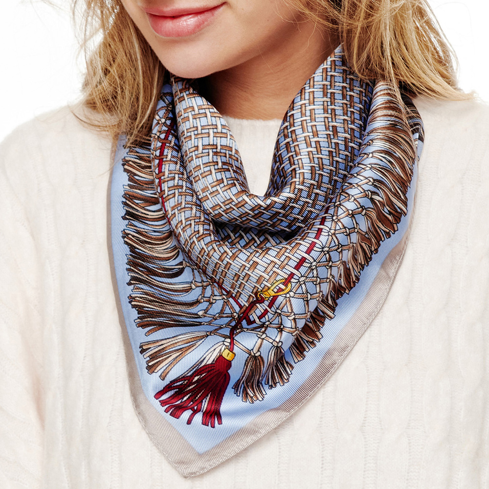 TASSEL WOVEN PATTERN PRINTED NECKERCHIEF SQUARE SCARF