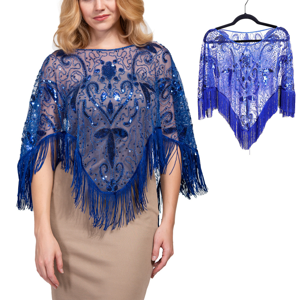 Vintage Sequin Embroidered Fringe Wrap Cape Shawl
