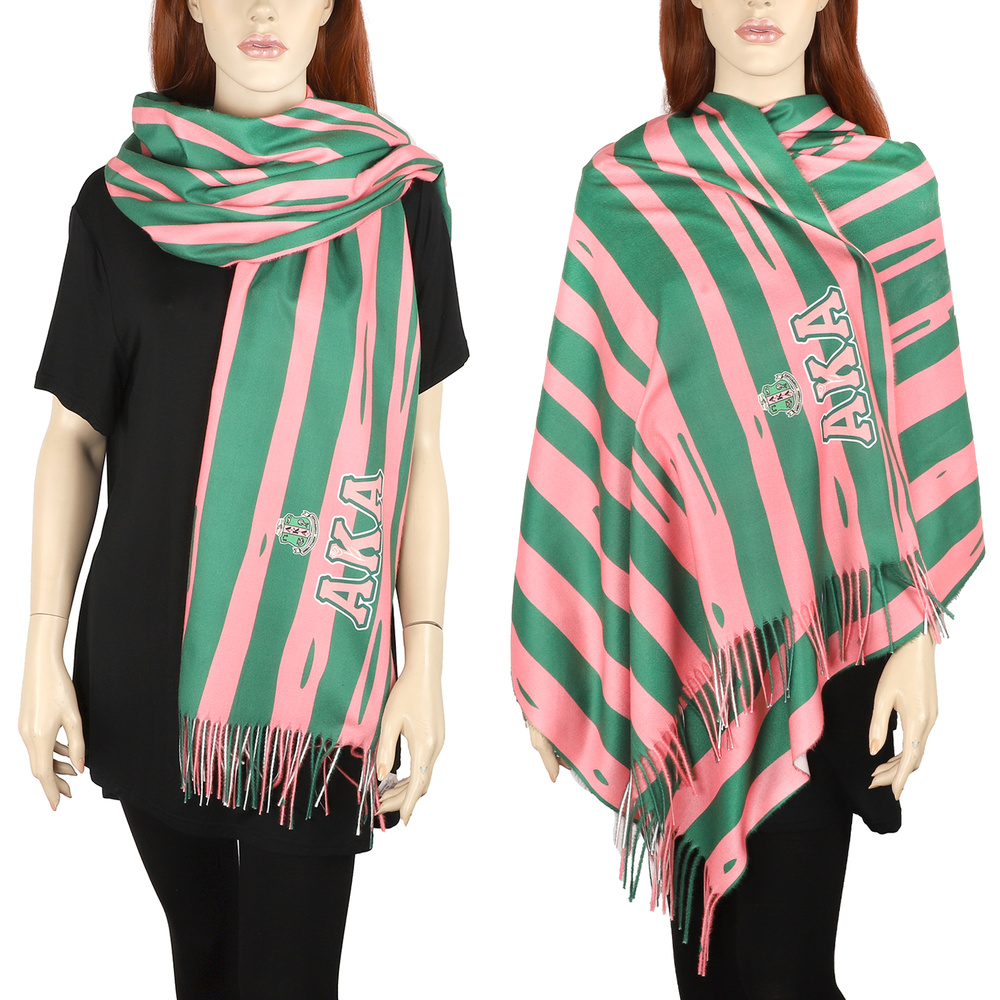 TWO-TONE STRIPE PATTERN ALPHA KAPPA ALPHA SORORITY 1908 FRINGE SHAWL SCARF