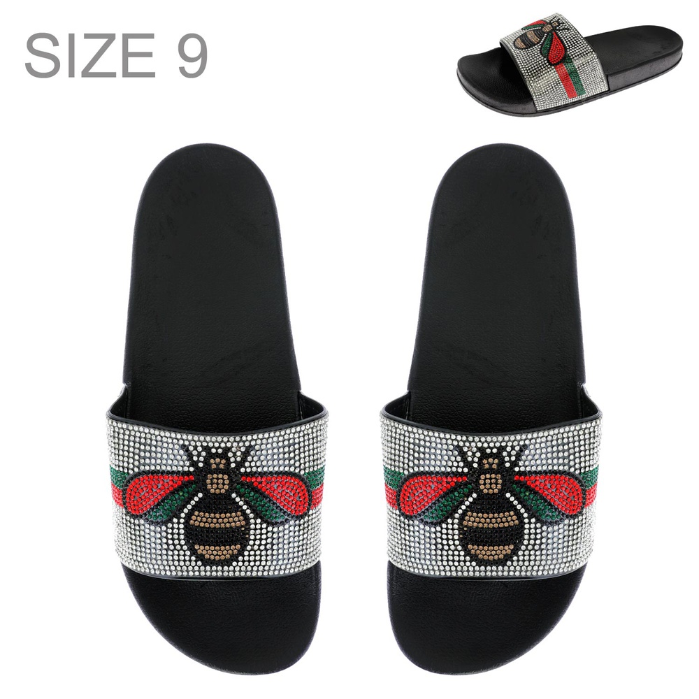 HONEY BEE CRYSTAL RHINESTONE GLAM FOOTBED POOL SLIDES WOMEN'S SLIDE SANDAL SLIPPERS