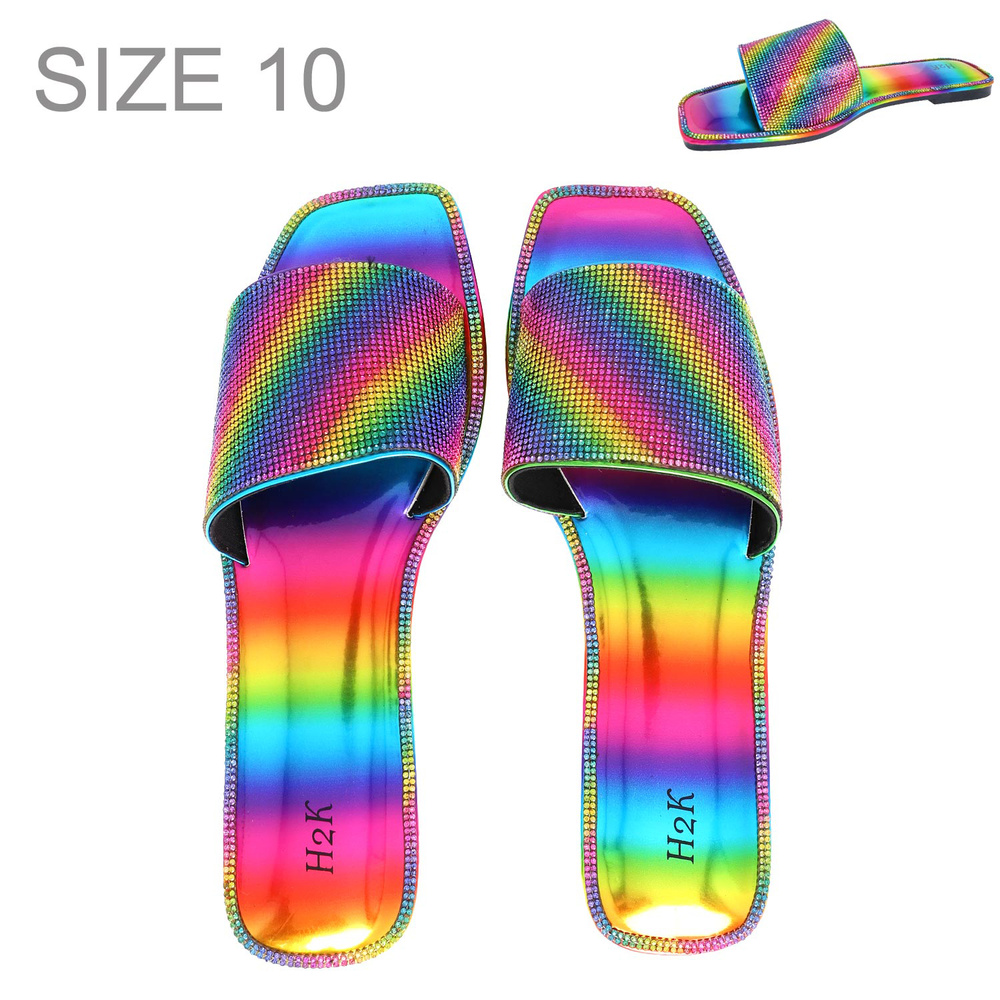 WOMEN'S EMBELLISHED CRYSTAL RHINESTONE RAINBOW FLAT JELLY SLIDES SLIP-ON SANDALS