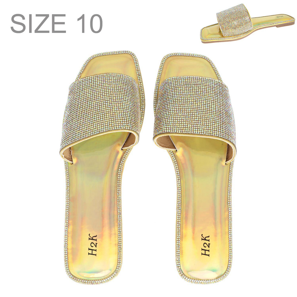 Women's Embellished Crystal Rhinestone Iridescent Flat Jelly Slides Slip-on Sandals