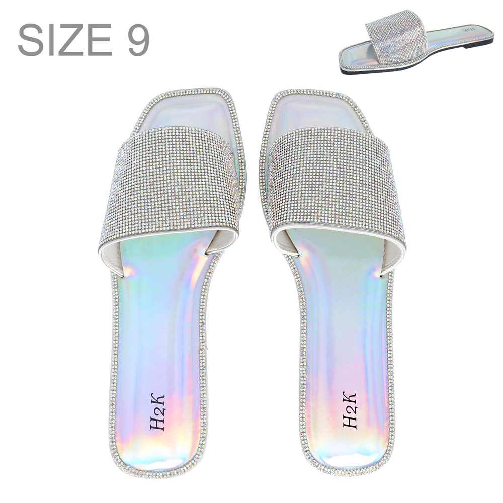Women's Embellished Crystal Rhinestone Iridescent Flat Jelly Slides Slip-on Sandals