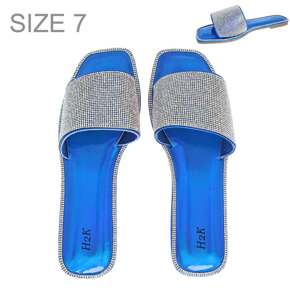 WOMEN'S EMBELLISHED CRYSTAL RHINESTONE FLAT JELLY SLIDES SLIP-ON SANDALS