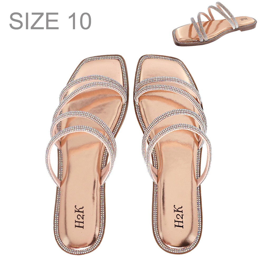 METALLIC ROSE WOMEN'S CRYSTAL RHINESTONE FLAT STRAPPY SANDALS