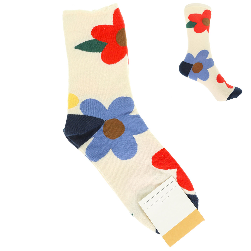 FLORAL WOMEN'S ADULT SIZE MULTICOLOR FLOWER PATTERN COTTON KNIT NOVELTY SOCKS