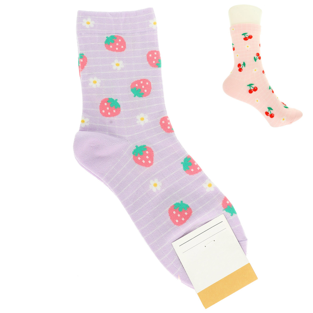 WOMEN'S ADULT SIZE MULTICOLOR FRUIT PATTERN COTTON KNIT NOVELTY SOCKS