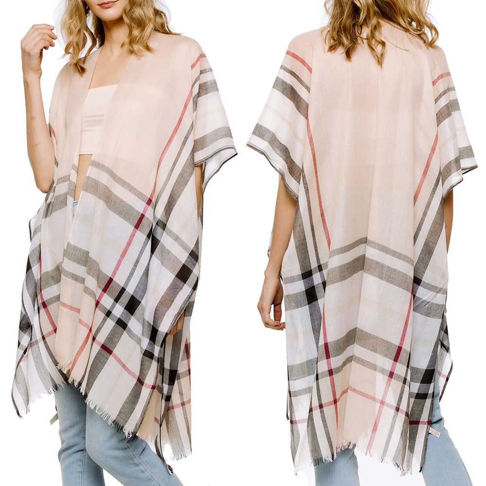 Tartan Plaid Print Kaftan Style Women's Kimono Shawl Cover Up