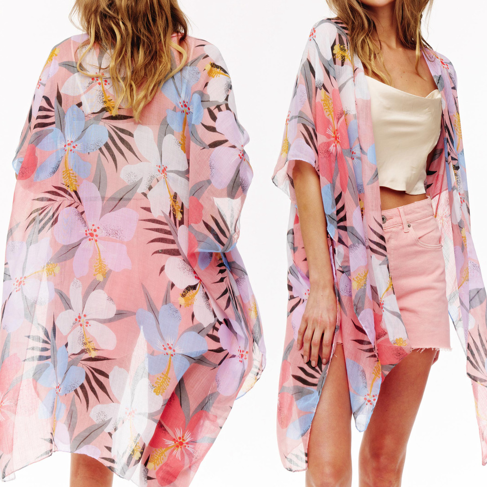 HIBISCUS TROPICAL TRANSLUCENT WOMEN'S COVER-UP KIMONO