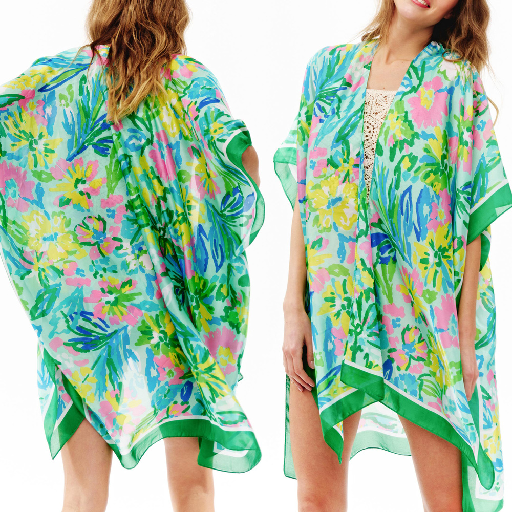 Floral Contrast Trim Translucent Women's Cover-up Kimono