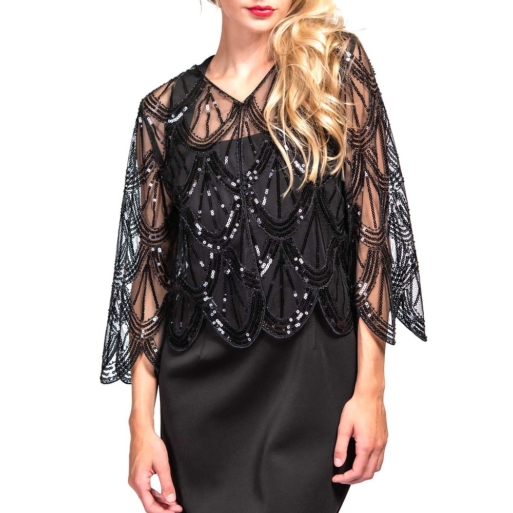 1920s Inspired Sequin Embroidered Fringe Shawl