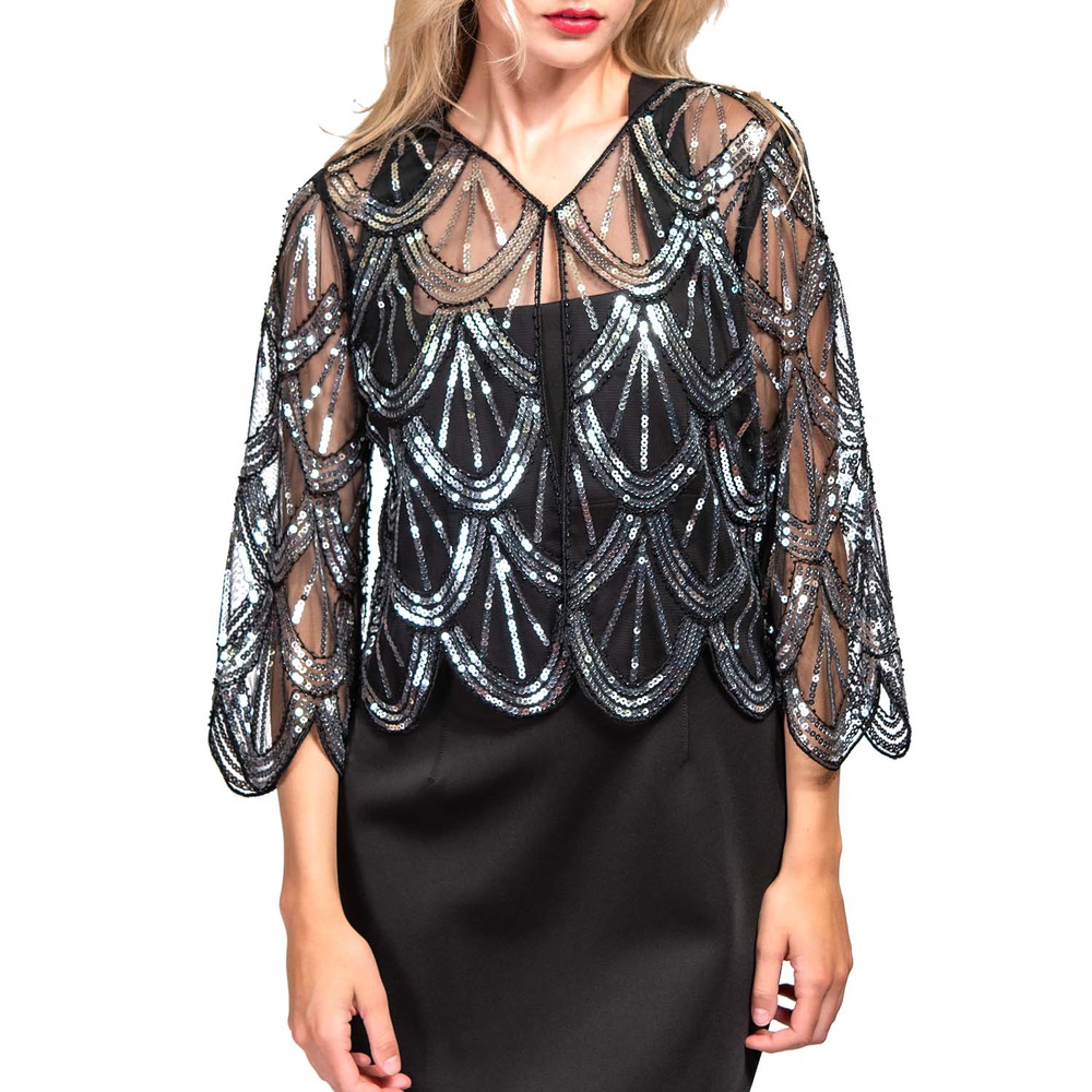 1920s Inspired Sequin Embroidered Fringe Shawl