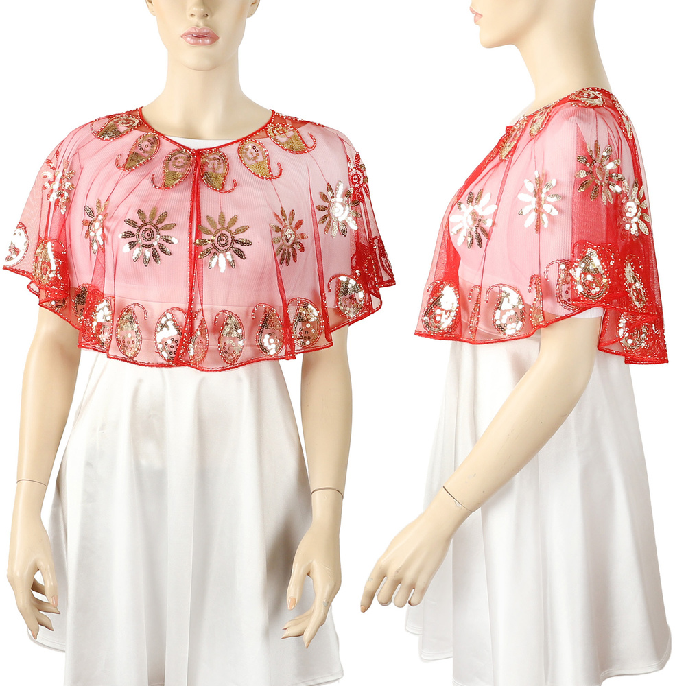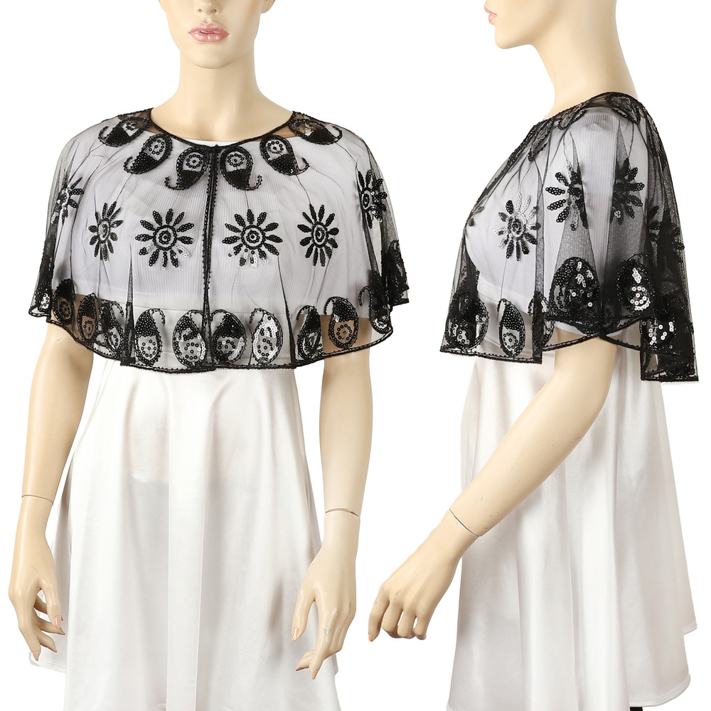 1920S INSPIRED FLORAL PATTERNED SEQUIN EMBROIDERED SHEER SHAWL