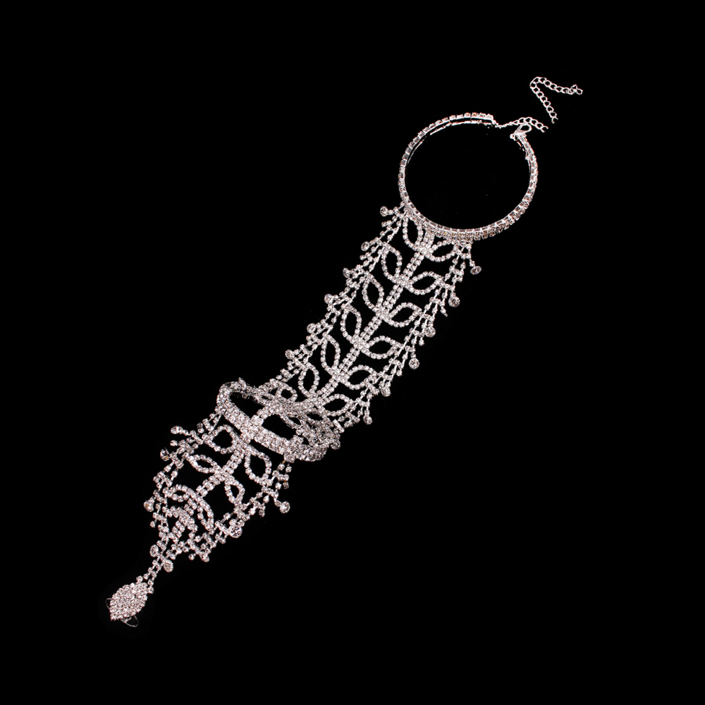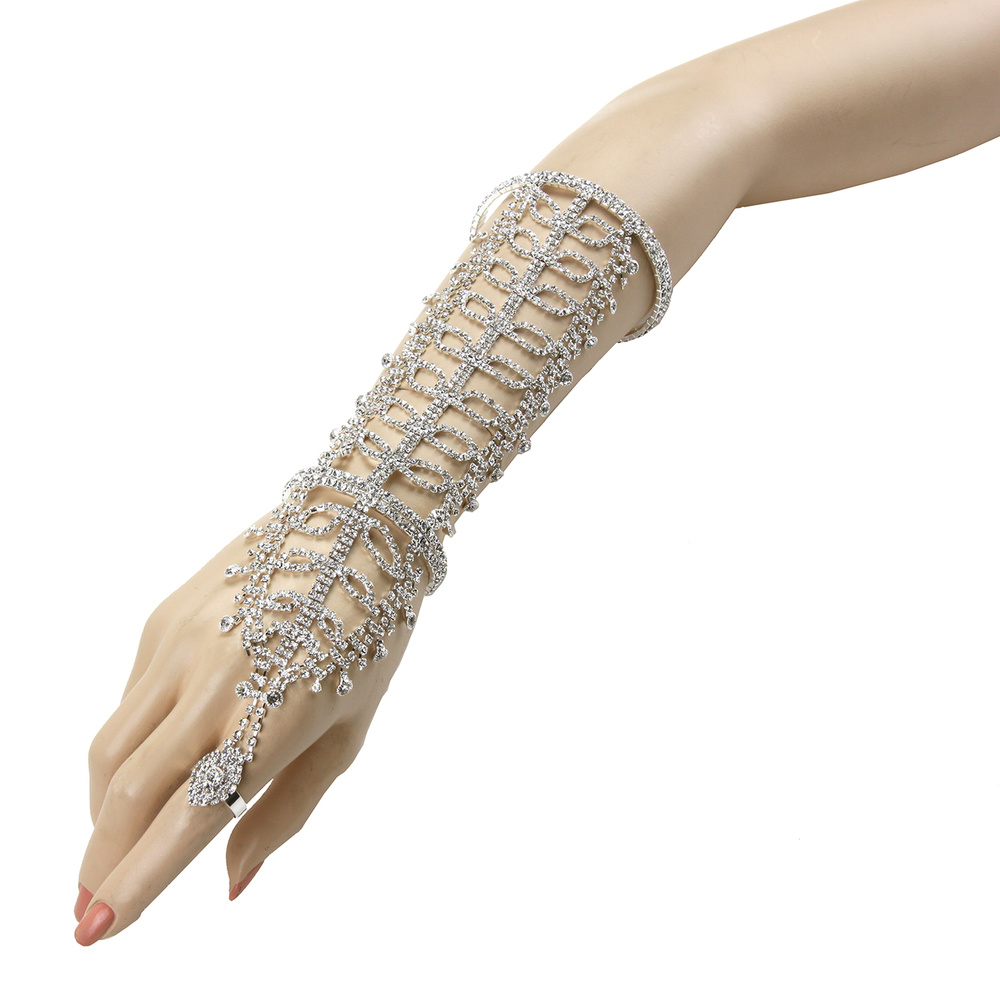 2 RING DAINTY RHINESTONE PAVE ARM HAND CHAIN BRACELETS