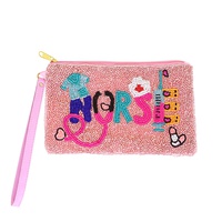 "COW GAL" PINK COW PRINT JEWELED SEED BEAD HANDMADE BEADED ZIPPER COIN BAG
