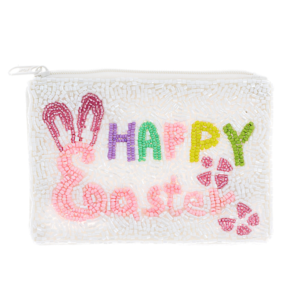 MULTICOLOR HAPPY EASTER SEED BEAD HANDMADE BEADED ZIPPER COIN BAG